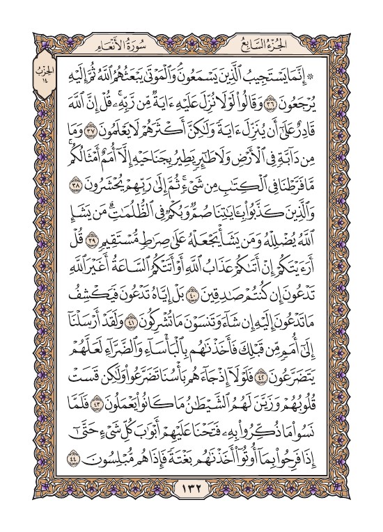 قراءة القرآن الكريم من الصفحة الثانية والثلاثون بعد المائة (132)، اضغط على الآية للوصول إلى تفاصيل الآية من تفسير وتلاوة