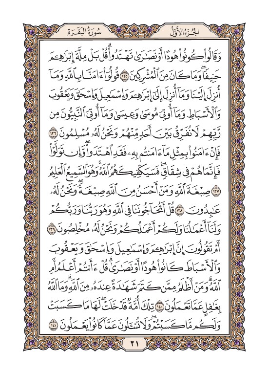 قراءة القرآن الكريم من الصفحة الحادية والعشرون (21)، اضغط على الآية للوصول إلى تفاصيل الآية من تفسير وتلاوة