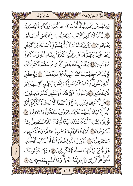 قراءة القرآن الكريم من الصفحة الرابعة عشرة بعد المائتين (214)، اضغط على الآية للوصول إلى تفاصيل الآية من تفسير وتلاوة