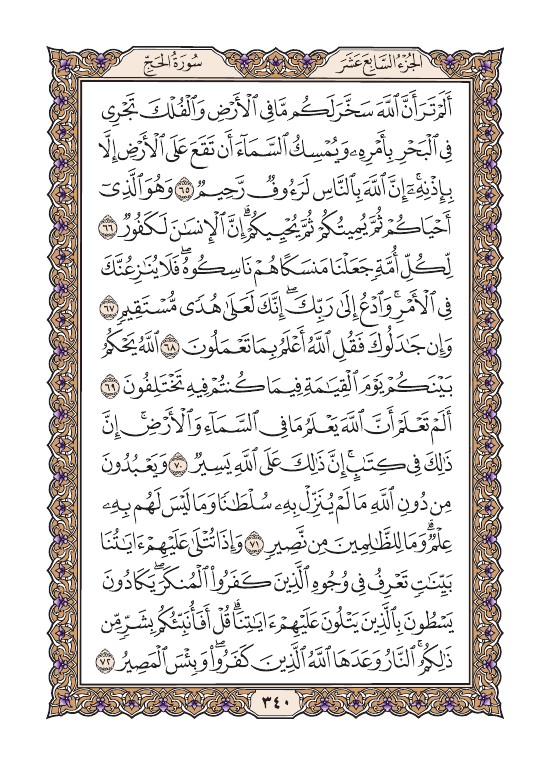 قراءة القرآن الكريم من الصفحة الأربعون بعد الثلاثمائة (340)، اضغط على الآية للوصول إلى تفاصيل الآية من تفسير وتلاوة