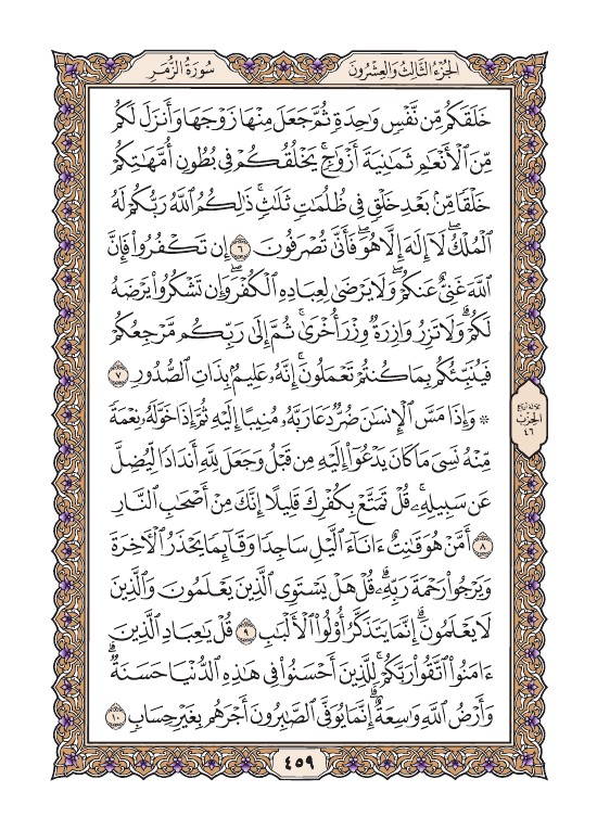قراءة القرآن الكريم من الصفحة التاسعة والخمسون بعد الأربعمائة (459)، اضغط على الآية للوصول إلى تفاصيل الآية من تفسير وتلاوة