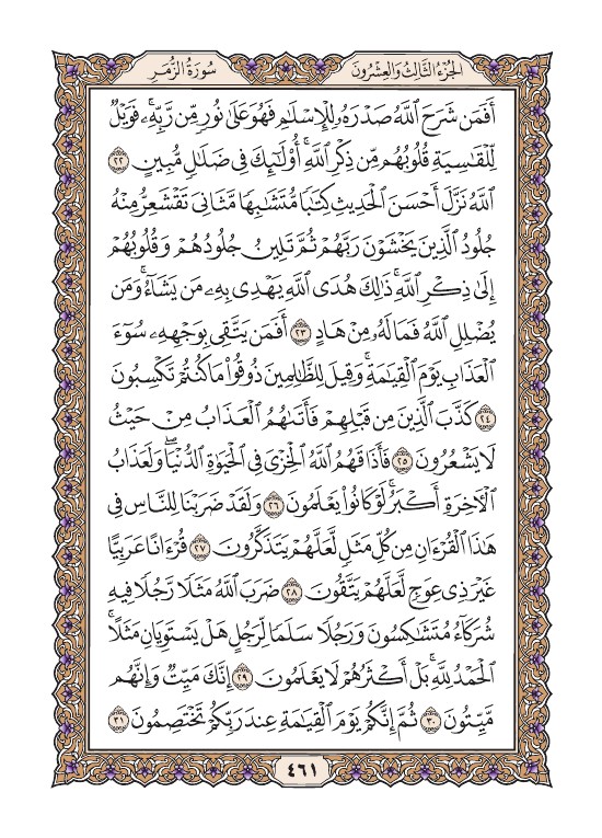 قراءة القرآن الكريم من الصفحة الحادية والستون بعد الأربعمائة (461)، اضغط على الآية للوصول إلى تفاصيل الآية من تفسير وتلاوة