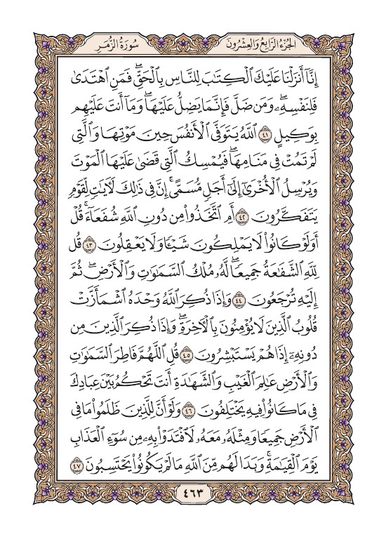 قراءة القرآن الكريم من الصفحة الثالثة والستون بعد الأربعمائة (463)، اضغط على الآية للوصول إلى تفاصيل الآية من تفسير وتلاوة