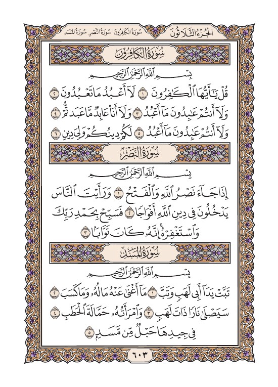 قراءة القرآن الكريم من الصفحة الثالثة بعد الستمائة (603)، اضغط على الآية للوصول إلى تفاصيل الآية من تفسير وتلاوة