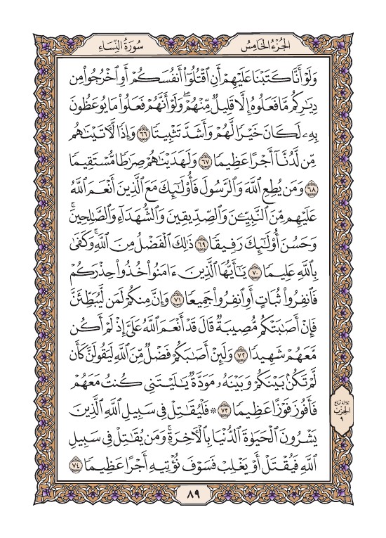 الصفحة التاسعة والثمانون من القرآن الكريم