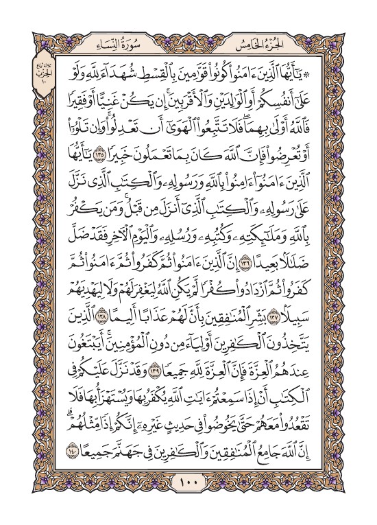 الصفحة المائة (100) مصورة من القرآن الكريم