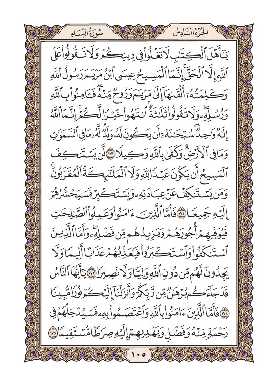الصفحة الخامسة بعد المائة (105) مصورة من القرآن الكريم