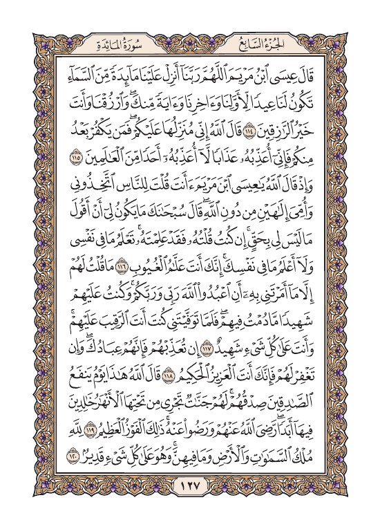 الصفحة السابعة والعشرون بعد المائة (127) مصورة من القرآن الكريم