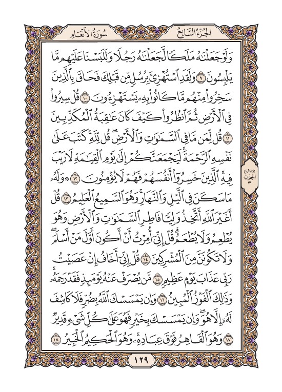 الصفحة التاسعة والعشرون بعد المائة (129) مصورة من القرآن الكريم