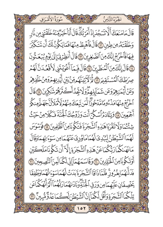 الصفحة الثانية والخمسون بعد المائة (152) مصورة من القرآن الكريم