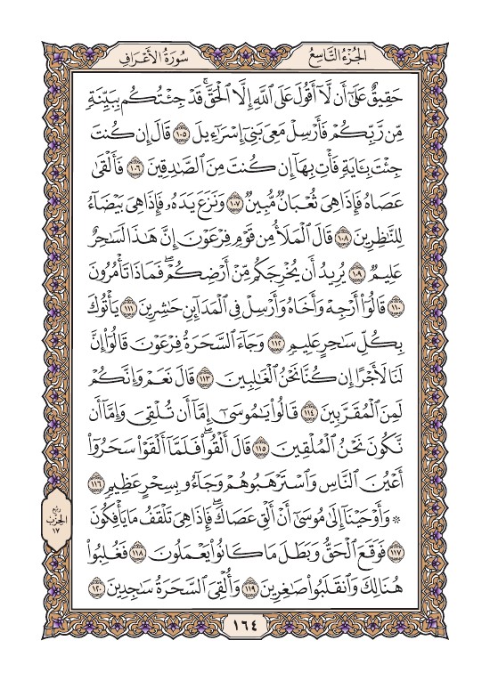 الصفحة الرابعة والستون بعد المائة (164) مصورة من القرآن الكريم