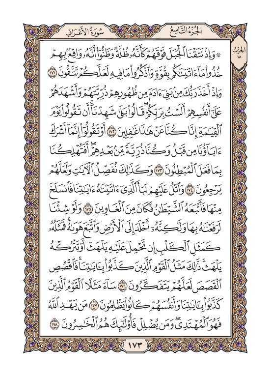 الصفحة الثالثة والسبعون بعد المائة (173) مصورة من القرآن الكريم