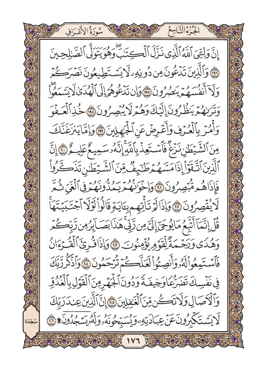 الصفحة السادسة والسبعون بعد المائة (176) مصورة من القرآن الكريم