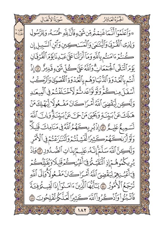الصفحة الثانية والثمانون بعد المائة (182) مصورة من القرآن الكريم