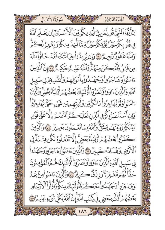 الصفحة السادسة والثمانون بعد المائة (186) مصورة من القرآن الكريم
