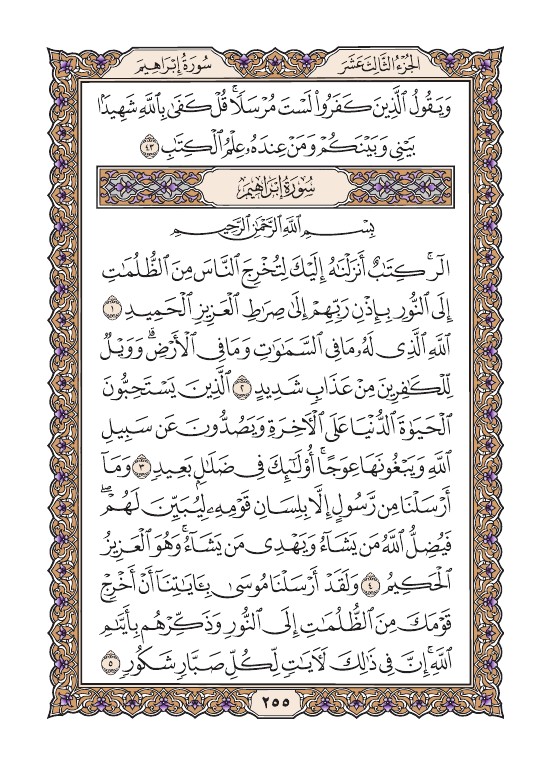 الصفحة الخامسة والخمسون بعد المائتين (255) مصورة من القرآن الكريم