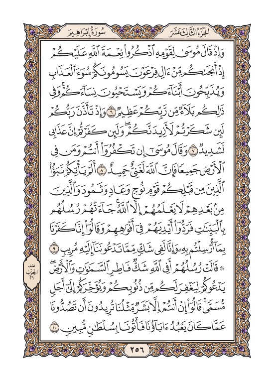 الصفحة السادسة والخمسون بعد المائتين (256) مصورة من القرآن الكريم