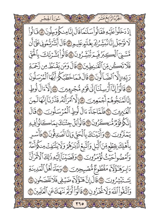 الصفحة الخامسة والستون بعد المائتين (265) مصورة من القرآن الكريم