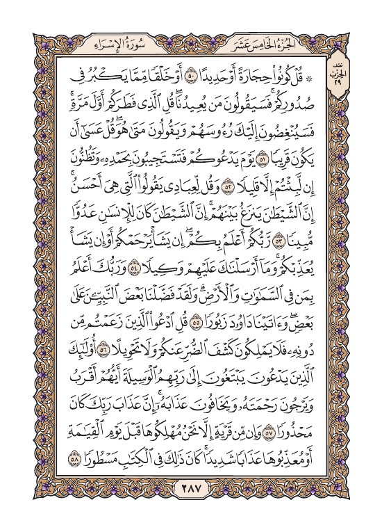 الصفحة السابعة والثمانون بعد المائتين (287) مصورة من القرآن الكريم
