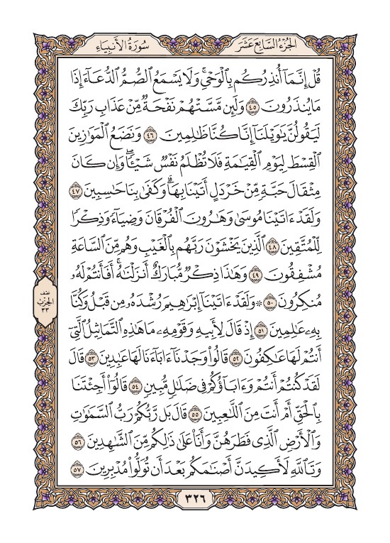 الصفحة السادسة والعشرون بعد الثلاثمائة (326) مصورة من القرآن الكريم