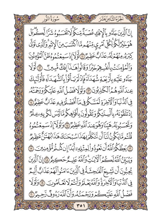الصفحة الحادية والخمسون بعد الثلاثمائة (351) مصورة من القرآن الكريم