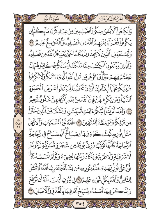 الصفحة الرابعة والخمسون بعد الثلاثمائة (354) مصورة من القرآن الكريم