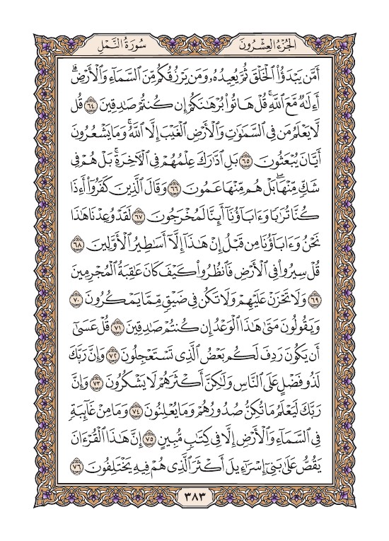 الصفحة الثالثة والثمانون بعد الثلاثمائة (383) مصورة من القرآن الكريم
