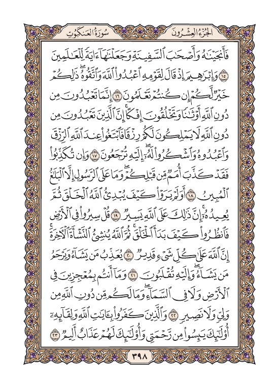 الصفحة الثامنة والتسعون بعد الثلاثمائة (398) مصورة من القرآن الكريم