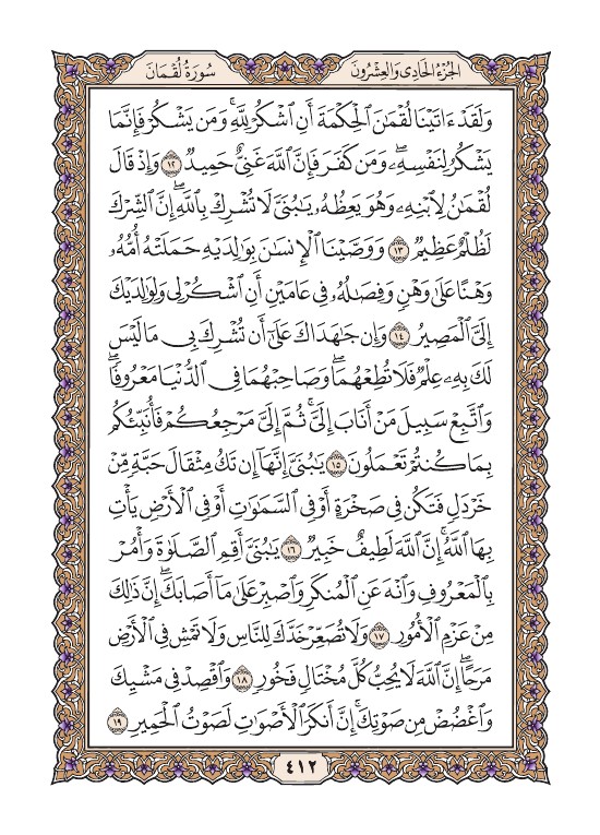 الصفحة الثانية عشرة بعد الأربعمائة (412) مصورة من القرآن الكريم