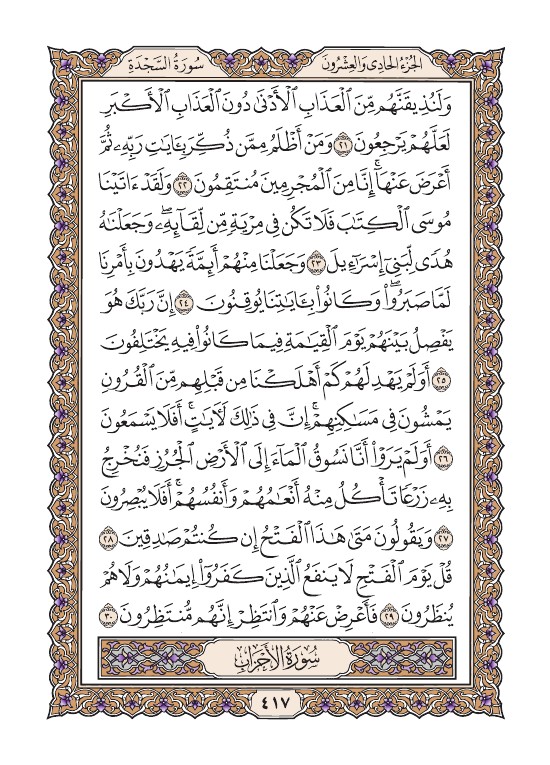 الصفحة السابعة عشرة بعد الأربعمائة (417) مصورة من القرآن الكريم