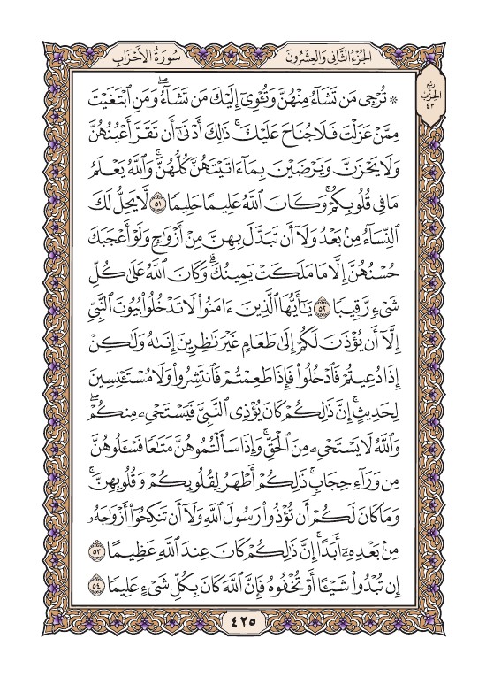 الصفحة الخامسة والعشرون بعد الأربعمائة (425) مصورة من القرآن الكريم