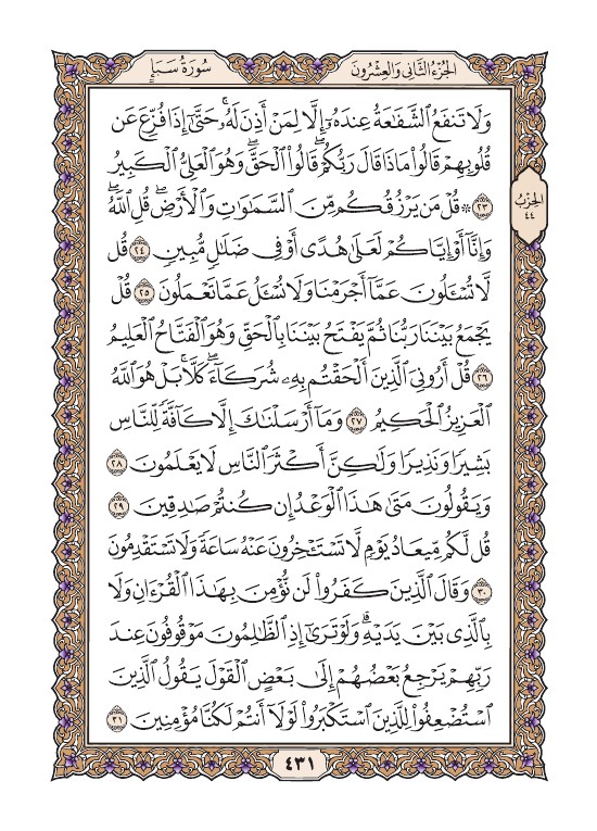 الصفحة الحادية والثلاثون بعد الأربعمائة (431) مصورة من القرآن الكريم