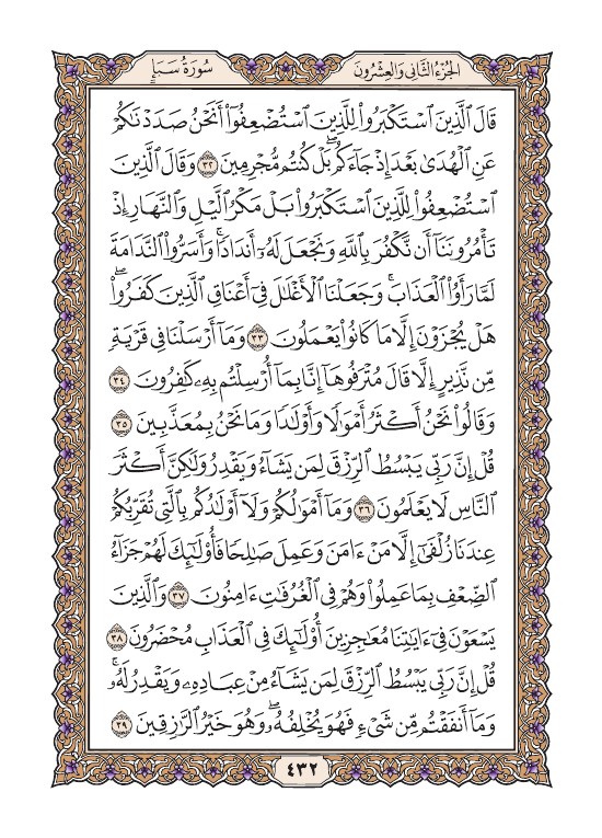 الصفحة الثانية والثلاثون بعد الأربعمائة (432) مصورة من القرآن الكريم