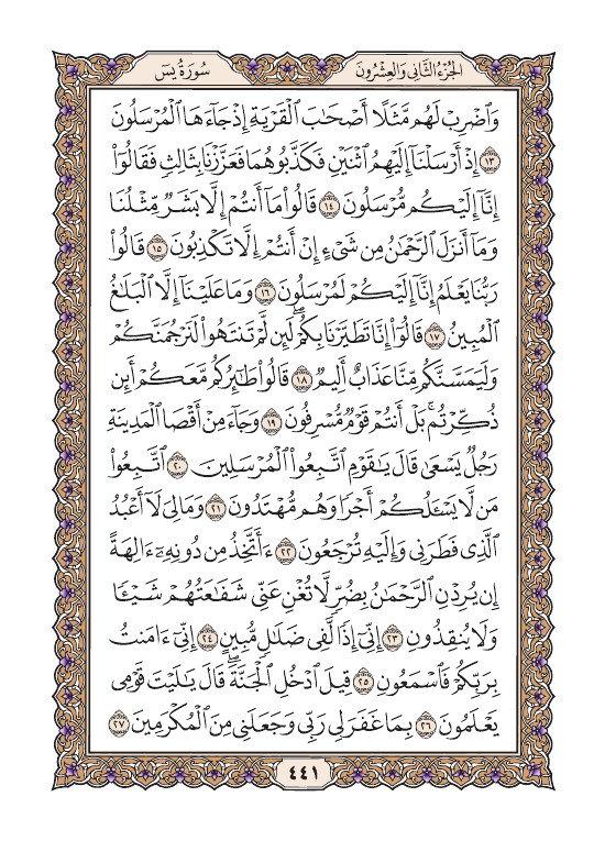 الصفحة الحادية والأربعون بعد الأربعمائة (441) مصورة من القرآن الكريم