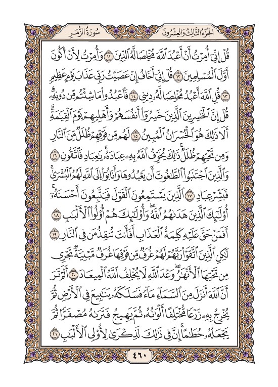 الصفحة الستون بعد الأربعمائة (460) مصورة من القرآن الكريم
