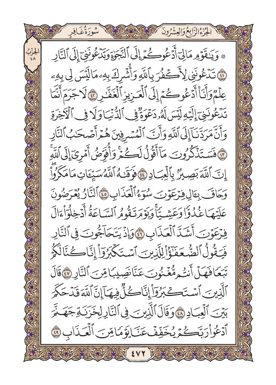 الصفحة الثانية والسبعون بعد الأربعمائة (472) مصورة من القرآن الكريم