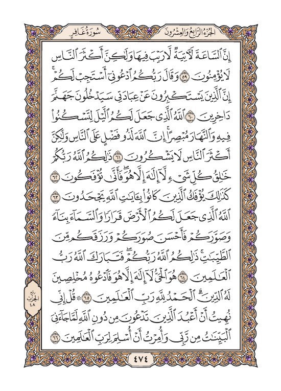 الصفحة الرابعة والسبعون بعد الأربعمائة (474) مصورة من القرآن الكريم