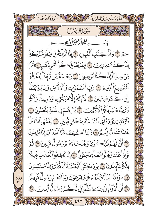 الصفحة السادسة والتسعون بعد الأربعمائة (496) مصورة من القرآن الكريم