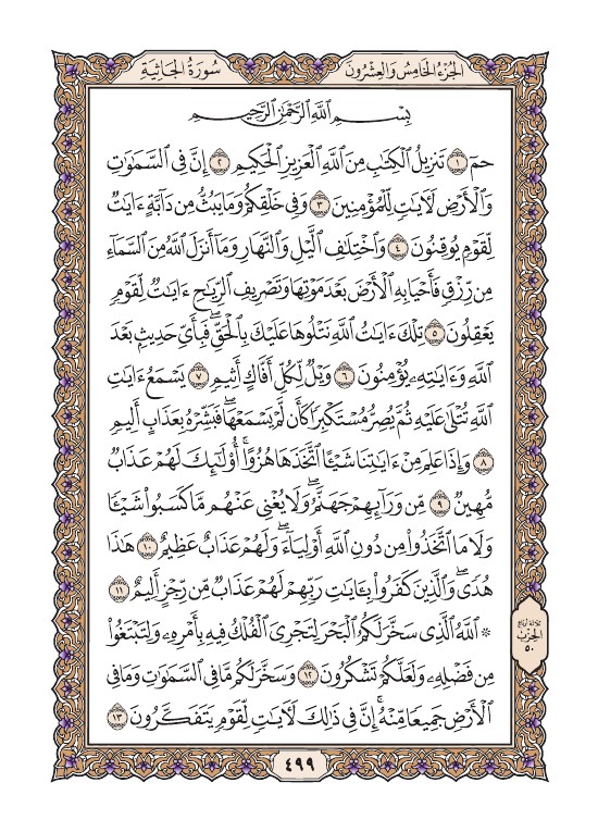 الصفحة التاسعة والتسعون بعد الأربعمائة (499) مصورة من القرآن الكريم