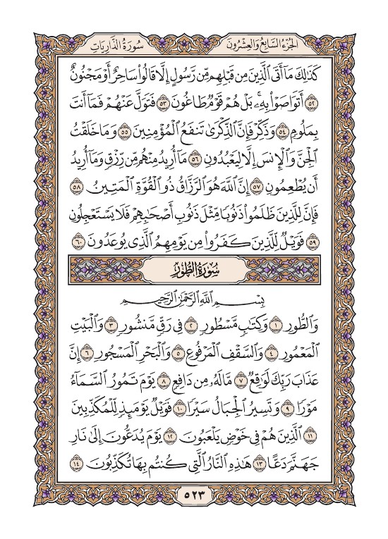 الصفحة الثالثة والعشرون بعد الخمسمائة (523) مصورة من القرآن الكريم