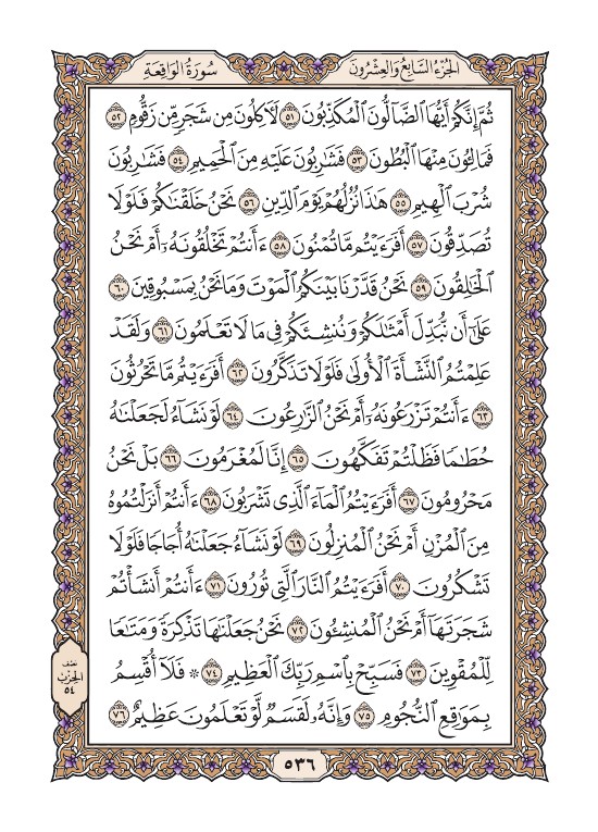 الصفحة السادسة والثلاثون بعد الخمسمائة (536) مصورة من القرآن الكريم