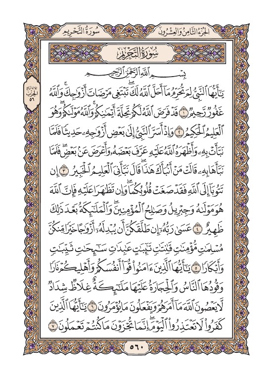 الصفحة الستون بعد الخمسمائة (560) مصورة من القرآن الكريم