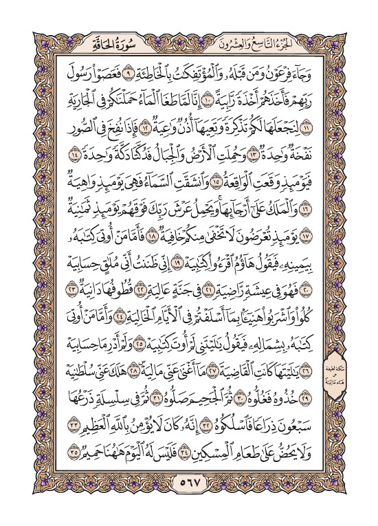 الصفحة السابعة والستون بعد الخمسمائة (567) مصورة من القرآن الكريم