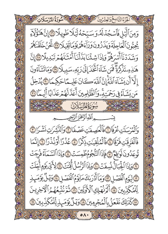 الصفحة الثمانون بعد الخمسمائة (580) مصورة من القرآن الكريم