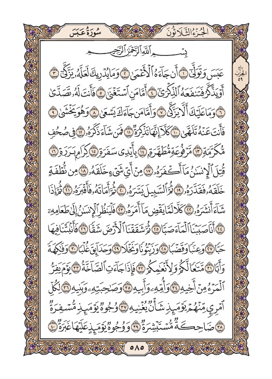 الصفحة الخامسة والثمانون بعد الخمسمائة (585) مصورة من القرآن الكريم