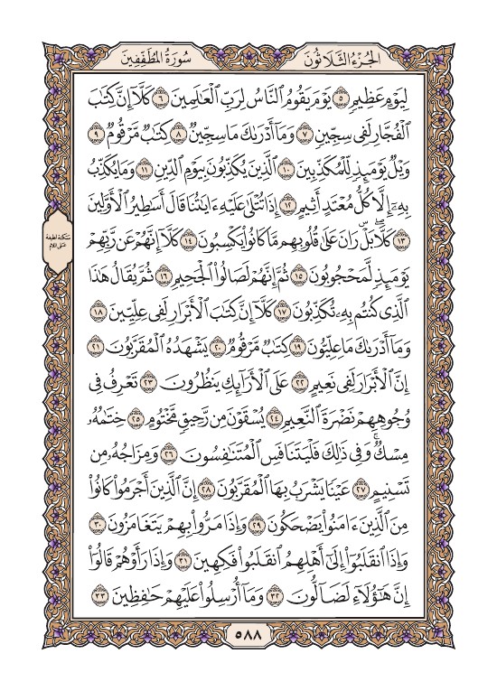 الصفحة الثامنة والثمانون بعد الخمسمائة (588) مصورة من القرآن الكريم