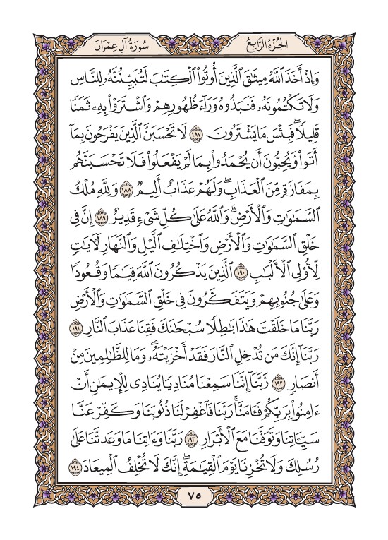 الصفحة الخامسة والسبعون (75) مصورة من القرآن الكريم